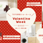 - バレンタインウィーク限定 !リモデル大相談会 in TOTO奈良ショールーム2026/2/1~2/15 TOTO奈良ショールームにてバレンタインウィークイベント開催!ご来場していただいたお客様にバレンタインチョコレートプレゼントなど、お得なイベントとなっています。水回りのリフォームをご検討中の方はぜひご参加くださいね!